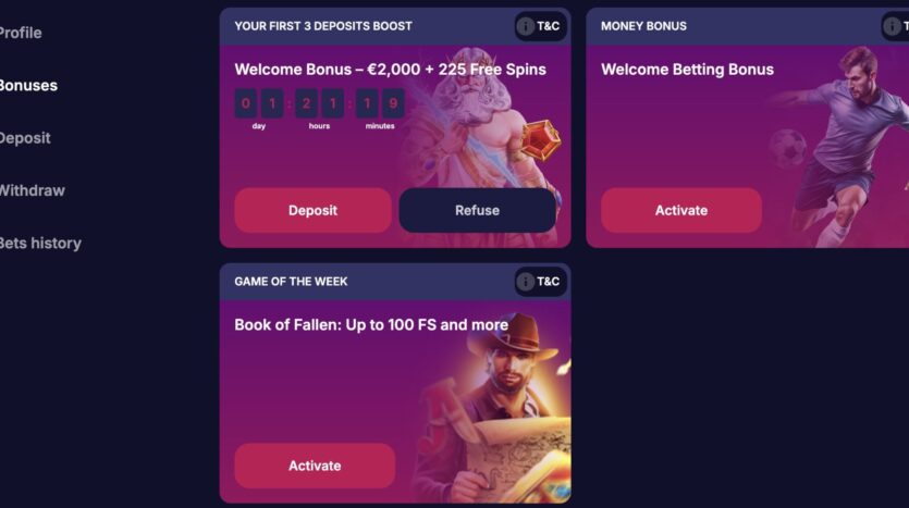 Dessutom är den maximala omvandlingsgränsen 5x vinstbeloppet. Alla vinster utöver denna gräns förverkas när du slutför omsättningskravet. Free spins-insatser hanteras med 0,20 EUR per snurr, oavsett spel.